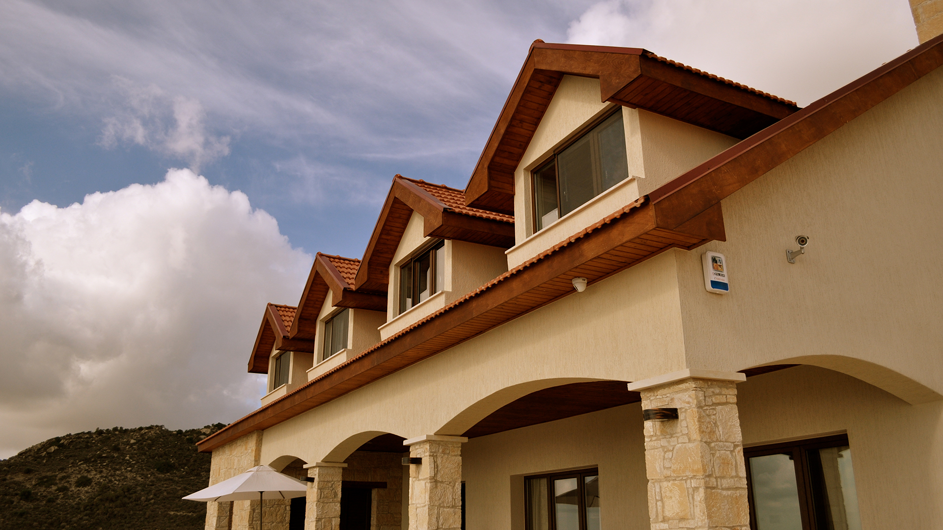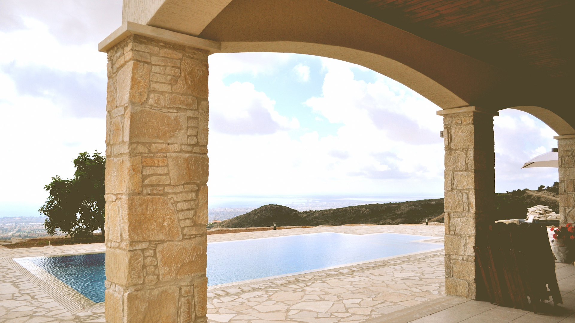 This work showcases a beautifully crafted hillside home, designed to blend traditional character with modern comfort. Featuring pitched terracotta roofs, natural stone finishes, and arched verandas, the architecture embraces the surrounding landscape and panoramic sea views. From the elegant driveway to the expansive outdoor terraces and a pool, every detail was thoughtfully executed to offer a warm, inviting, and timeless living environment.